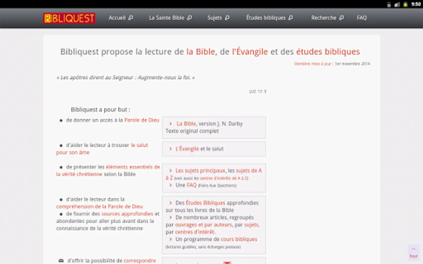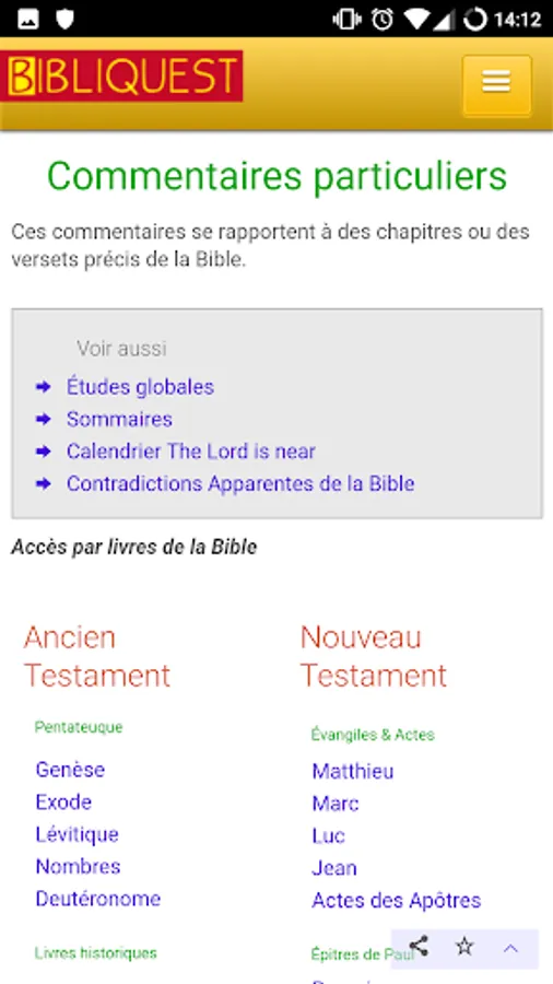 The Bibliquest application is a library that offers permanent access to the Bible, more than 2000 articles, comments, meditations on the Word of God, and complete books of Bible studies without the need for a permanent internet connection.
