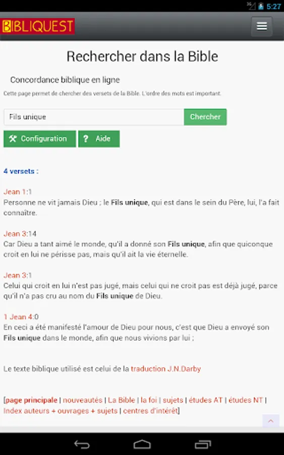 • a simple concordance which makes it possible to find Bible verses very quickly.