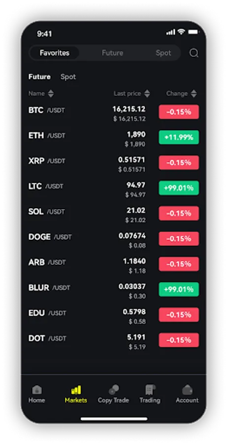 Fairdesk supports dozens of mainstream cryptocurrencies for trading, such as BTC/USDT, ETH/USDT, XRP/USDT, DOT/USDT, LINK/USDT, LTC/USDT, EOS/USDT, ETC/USDT, BNB/USDT, and 100+ trading pairs.
