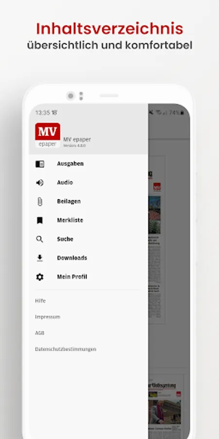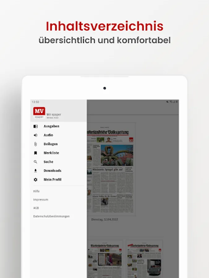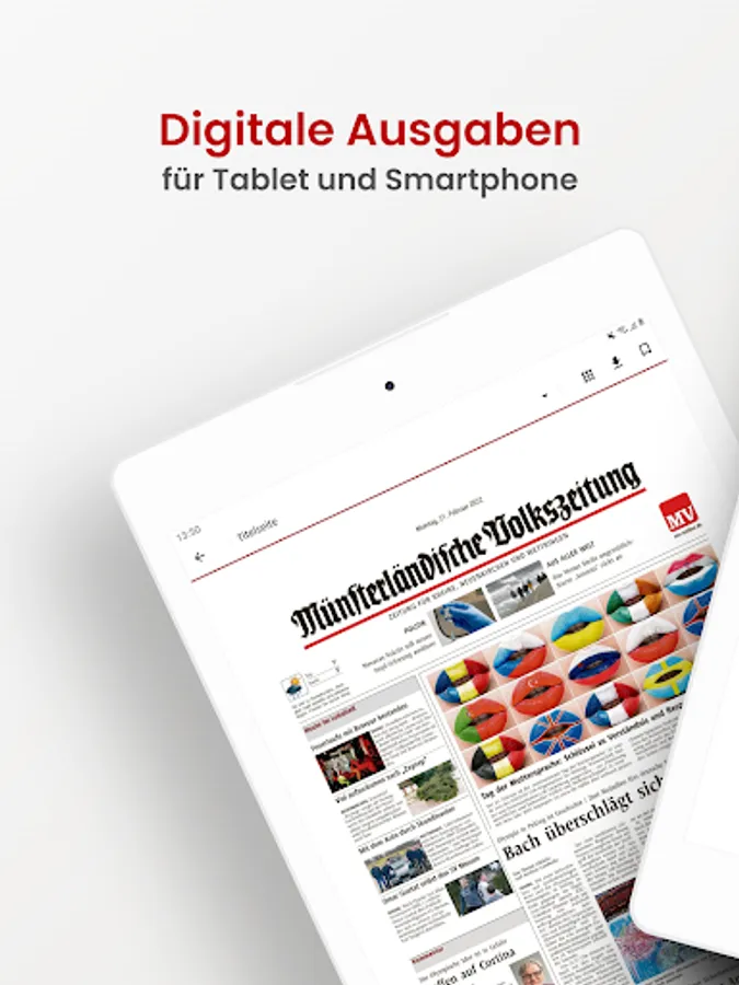 The MV epaper is available for smartphones and tablets. Here you can download the MV epaper on each publication day and thus navigate through the digital edition of your daily newspaper.