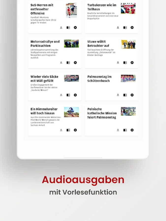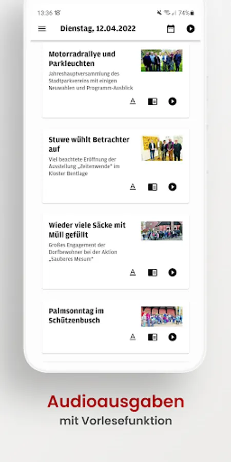 Reading function: The app can also read the articles to you if you wish. In the main menu you will find the "Audio" item with audible versions of the texts. Just sit back and let them read to you.