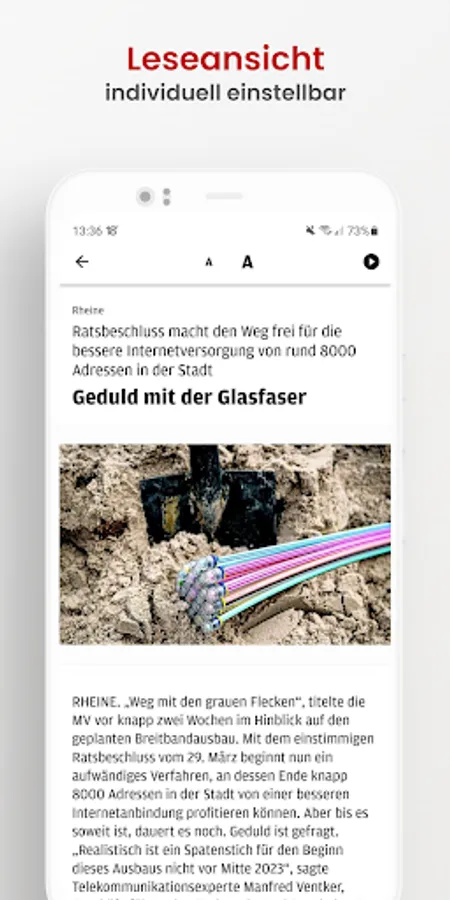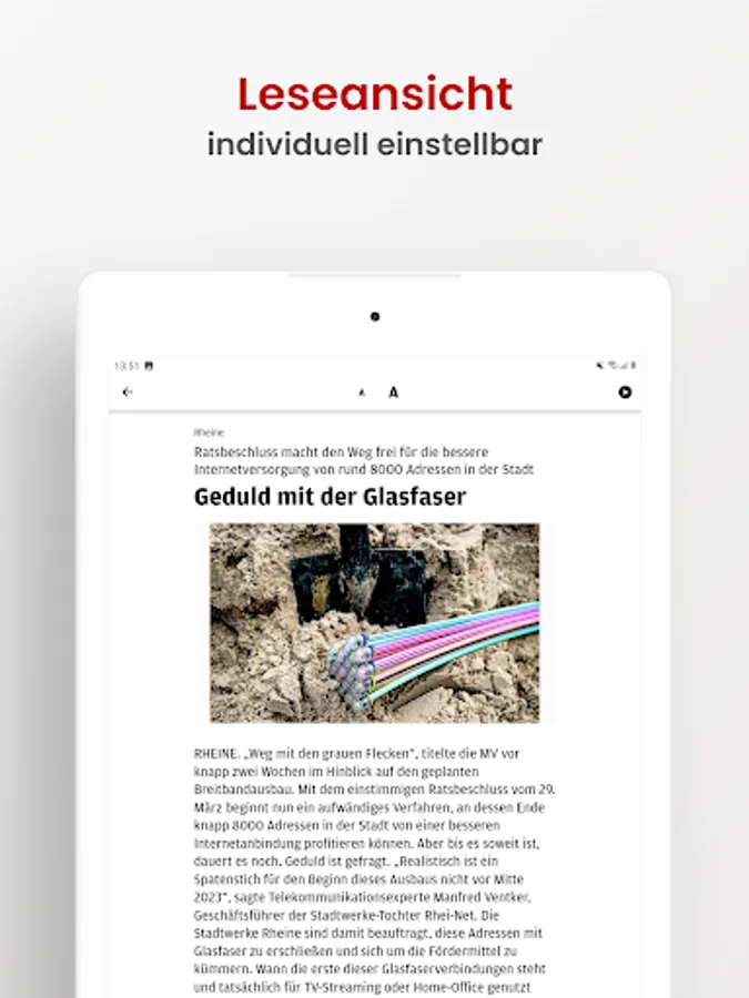 Single article view: If you are on a newspaper page, you can open the detailed view of the text with a double tap on an article.