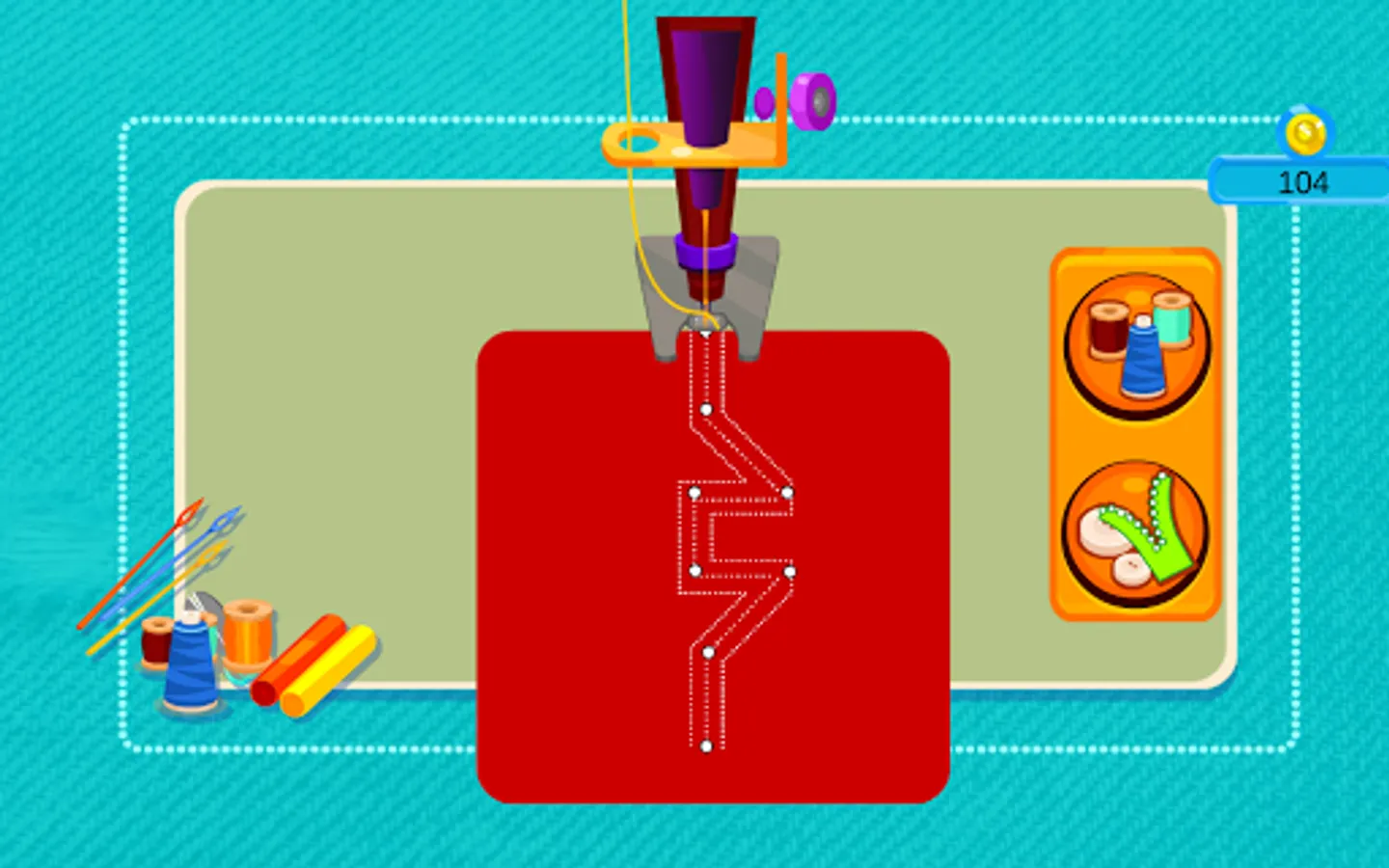 The player needs to drag up, down, Zig-Zag according to the dots given to get it stitched by the machine.On finishing this, the dress is ready for designing.