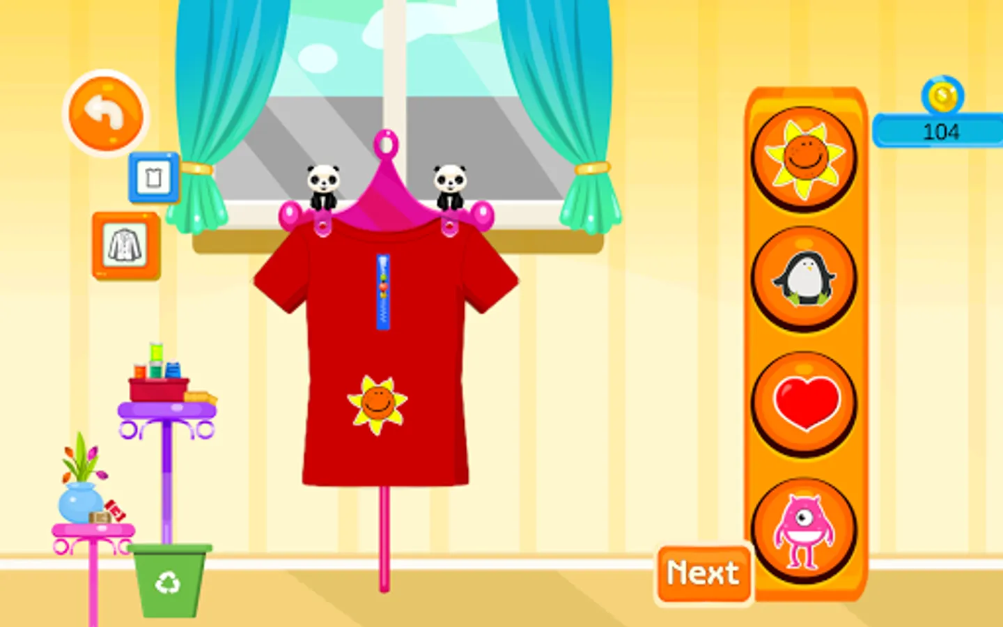 Cute and lovely stickers are shown on the game interface the player needs to tap and drag sticker to the position indicated by pointing fingers to get it placed. Stickers once selected and placed on the dress can be deleted.