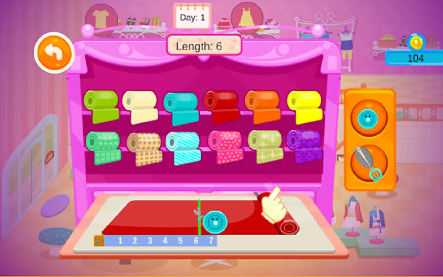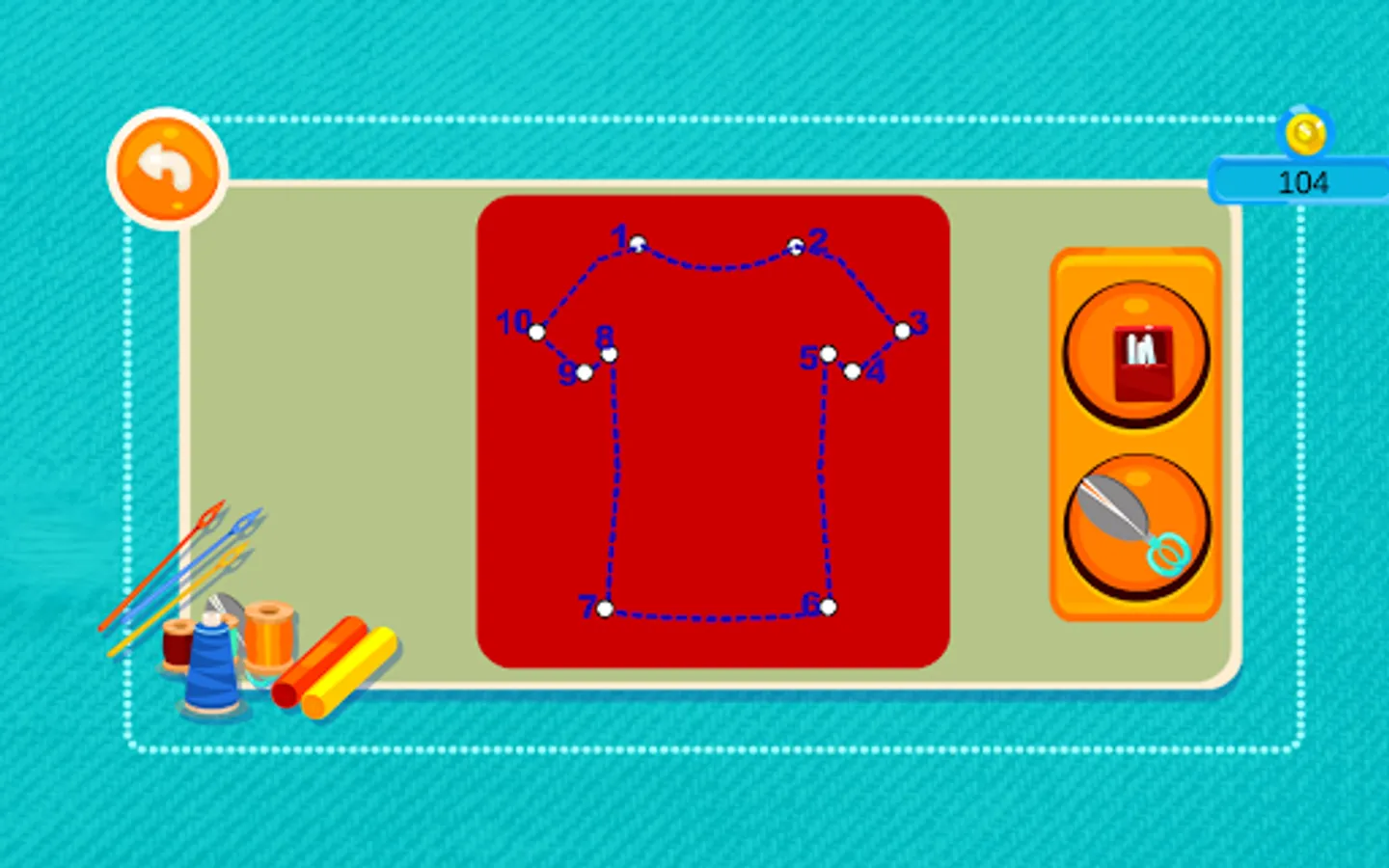 The Fabric is showed and the player need to drag the chalk and place it in the position indicated and join the dots accordingly to get it marked according to the dress shape.