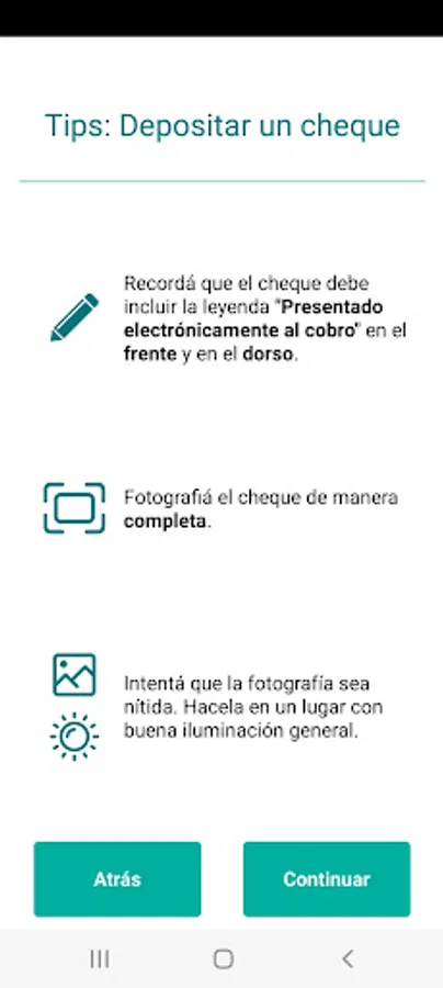 It is very important to remember that you will have to write on the front and back of your checks, the legend "presented electronically for collection" before capturing the images of the value.