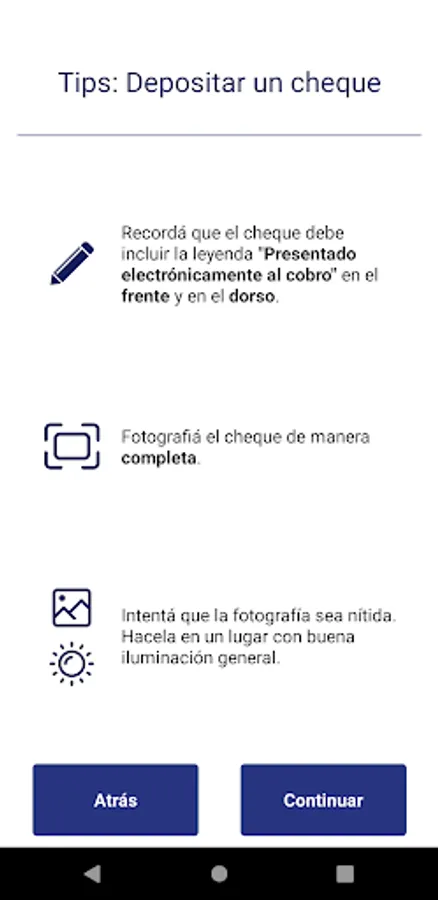 The images of the checks are transferred encrypted to the Bank, without being stored on the phone, thus guaranteeing the security and confidentiality of all your operations. The main functions and features of this application are: