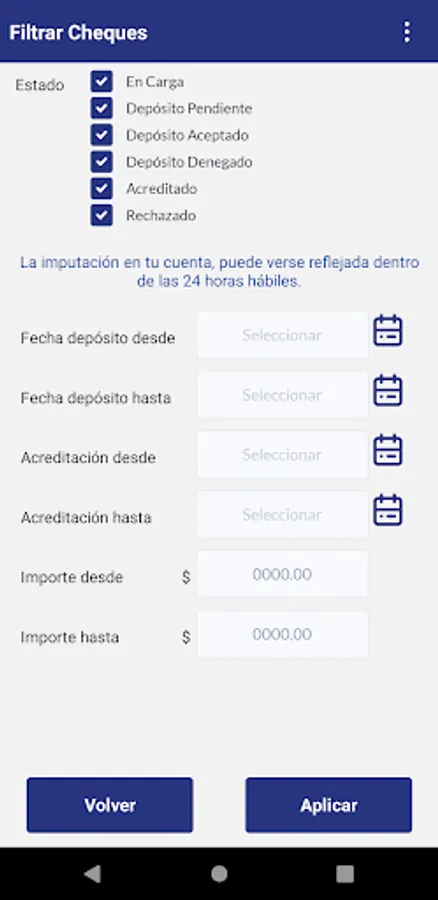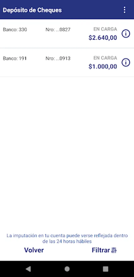 - You can capture the images directly from your cell phone, entering the deposits 24 hours a day. Those that you deposit until 2:00 p.m. of each business day will be processed that same day. After that time, they are deposited on the next business date.