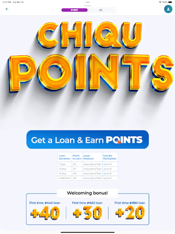 Chiqu is the official mobile application for managing your loans with Chiqu Automated Lending Kiosk. With Chiqu, you can easily access and monitor your loan accounts, view your bonus points & rewards, and stay on top of your payments and due dates.