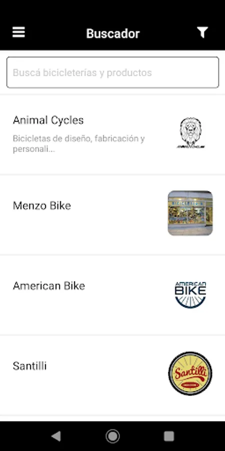 In the search engine, you will find the bicycle shops by name or by the product you need.
