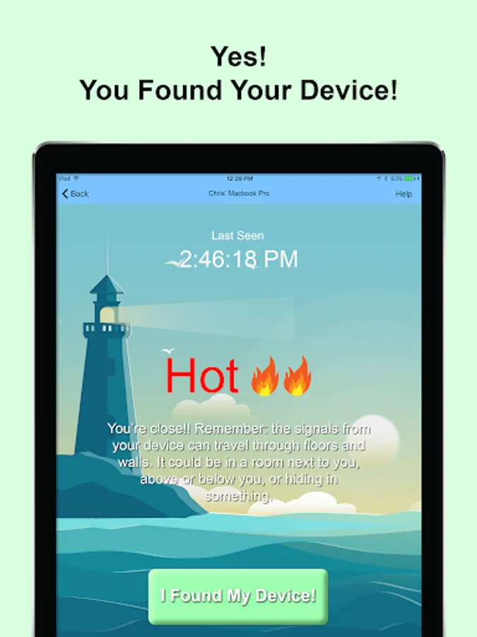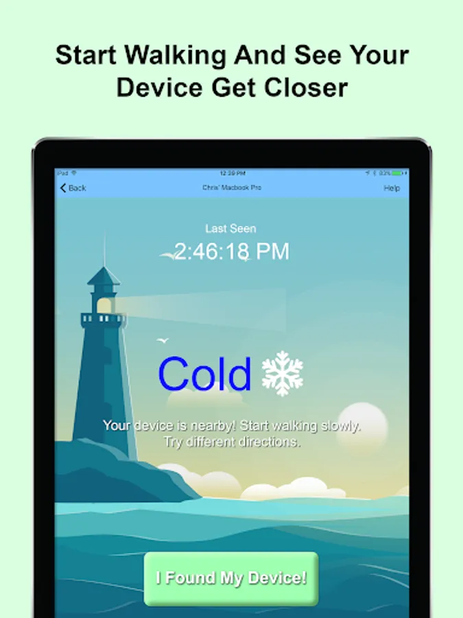 • Continue to walk slowly. As you move closer to your lost device the indicator will change from Cold to Warmer, it means your lost device is close to you!