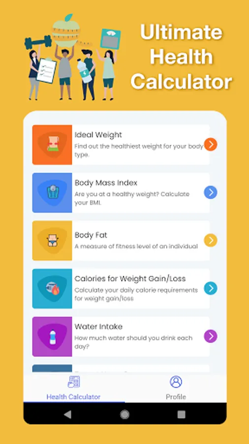 Use our health calculator to set health goals, and reach them! Equip yourself with the knowledge you need for reaching your ideal weight, exercise goals, family planning, water intake, and more!