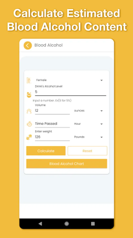 - Estimate blood alcohol content, volume, and more