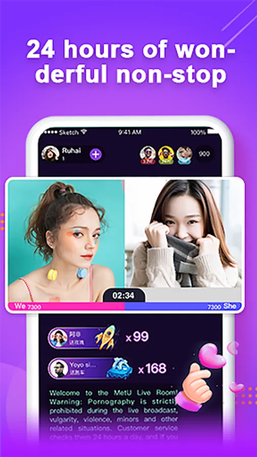 When you are upset and depressed, you can open Bico to watch the talent performance of female stars in real time to release pressure, watch it with many friends, and support discussion while enjoying. You can also have one-on-one communication with performers to unlock more talents you like.