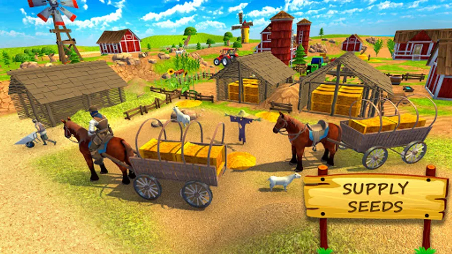 Start your virtual village life as an expert farmer; you own a big farm land where you have to harvest different vegetables, fruits and other edible items. In this farming simulator 2021 game you can use three different techniques of farming like primitive, vintage farming and modern farming with tools and machines tractor & drone farming, like tractor games you have to carry the cultivated items to city for sale. In this bailgadi wala game You will experience forge plow, watering, spray pesticide and fertilizer etc in this agriculture game.
