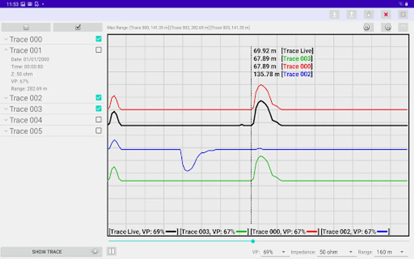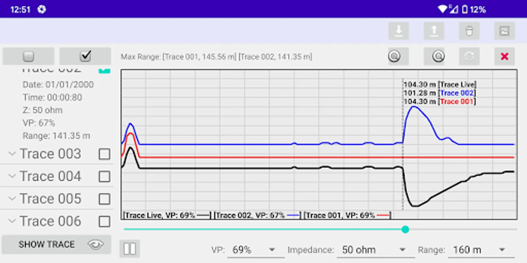 Our APP is designed for remotely controlling the Bluetooth embedded TDR devices (designed by B I Communications Ltd). You can download the trace data (saved in the TDR device) to the APP. The downloaded traces can be plotted on your mobile device. Furthermore, you can remotely control the connected TDR device to get real-time traces. You can decide to save the real-time trace data in your mobile device or upload to your TDR device. Moreover, you can export the trace figures from the APP to your gallery. Also, you can share a report (with trace figure) via email or third party social networking APP.