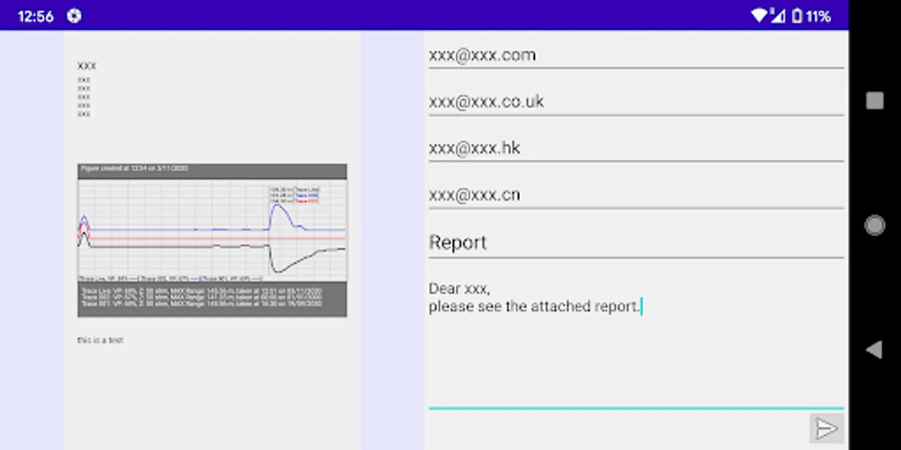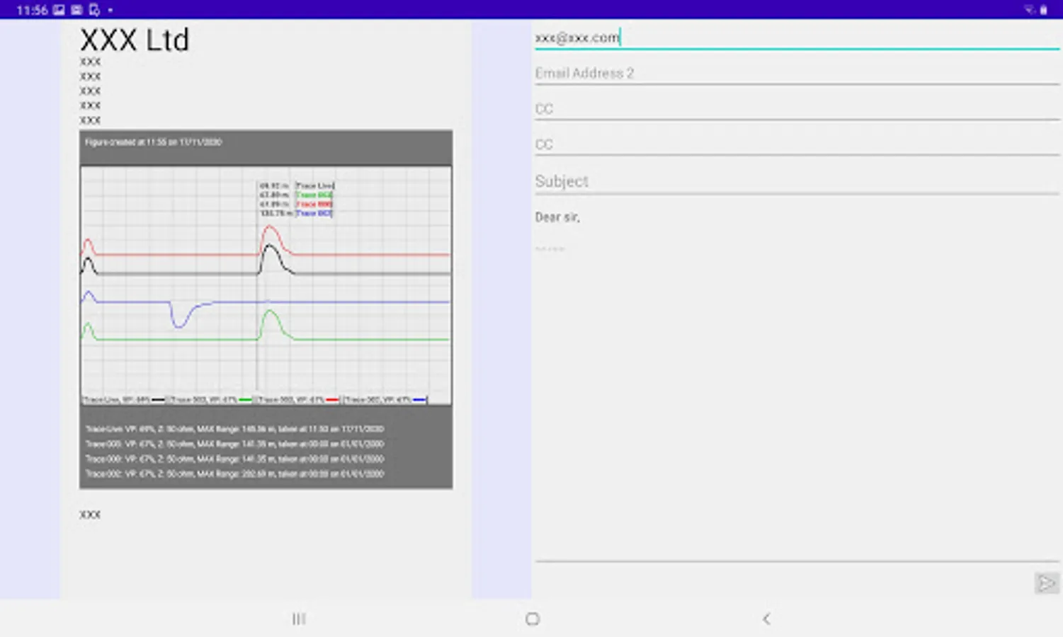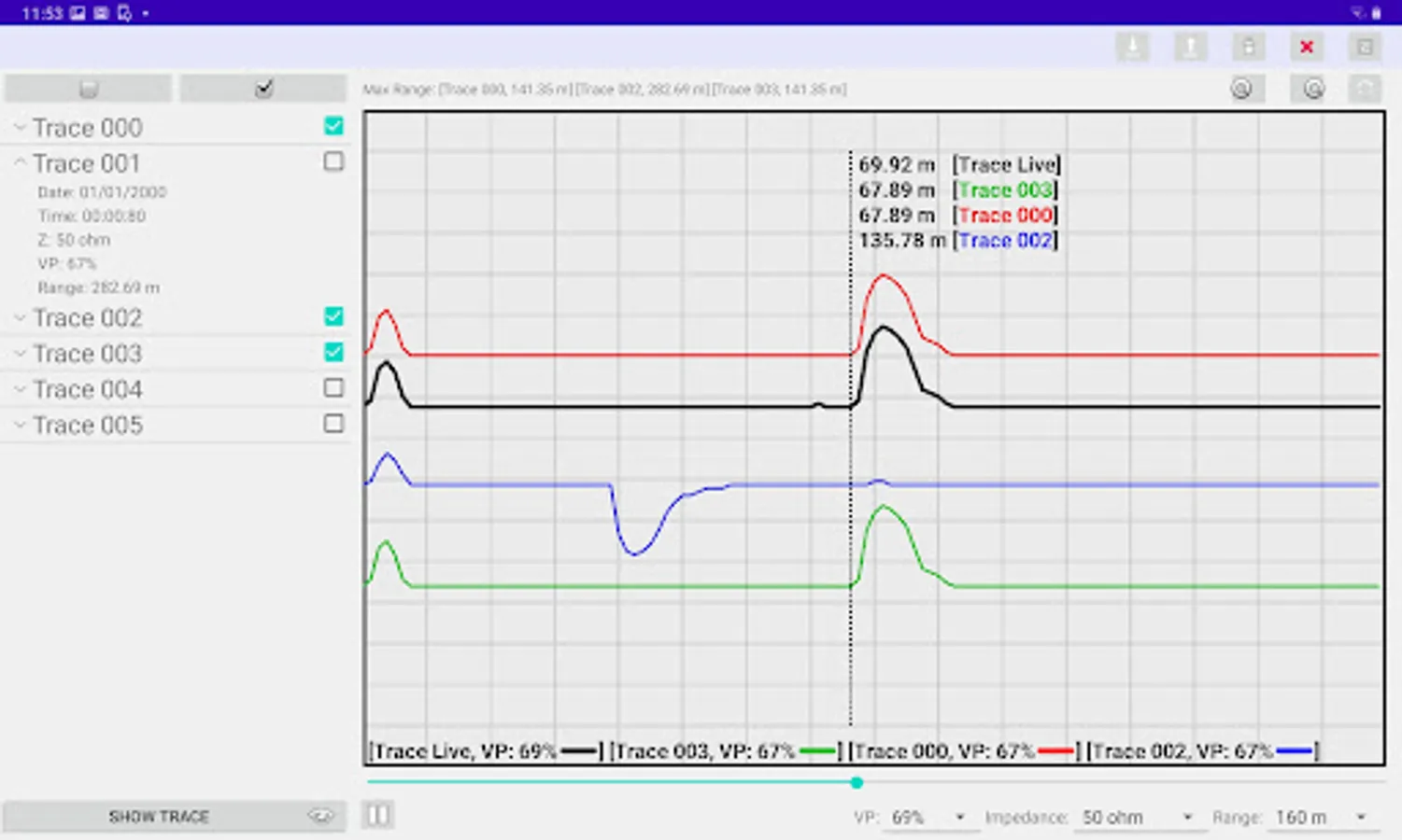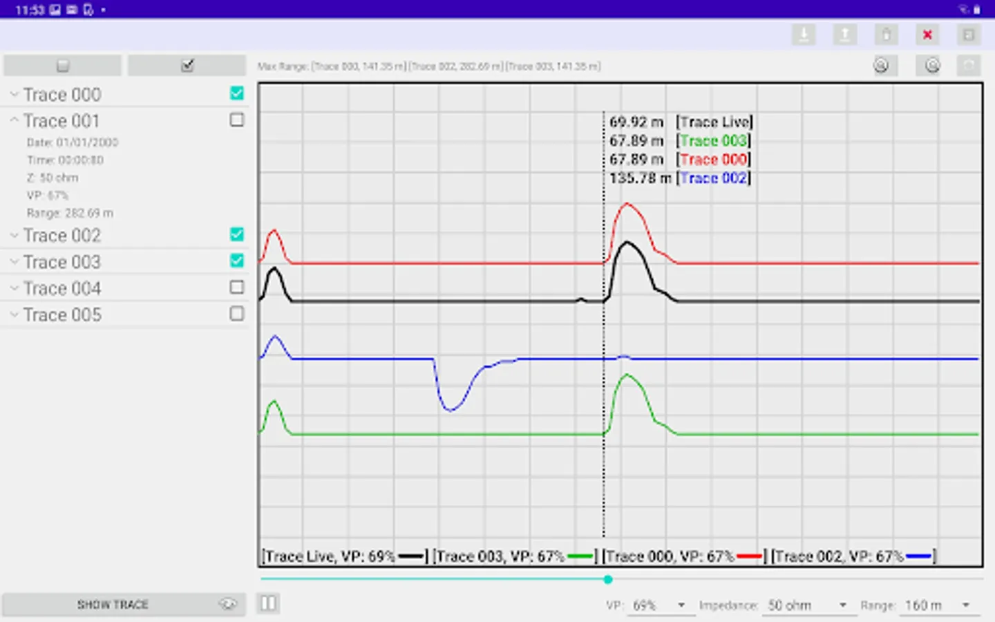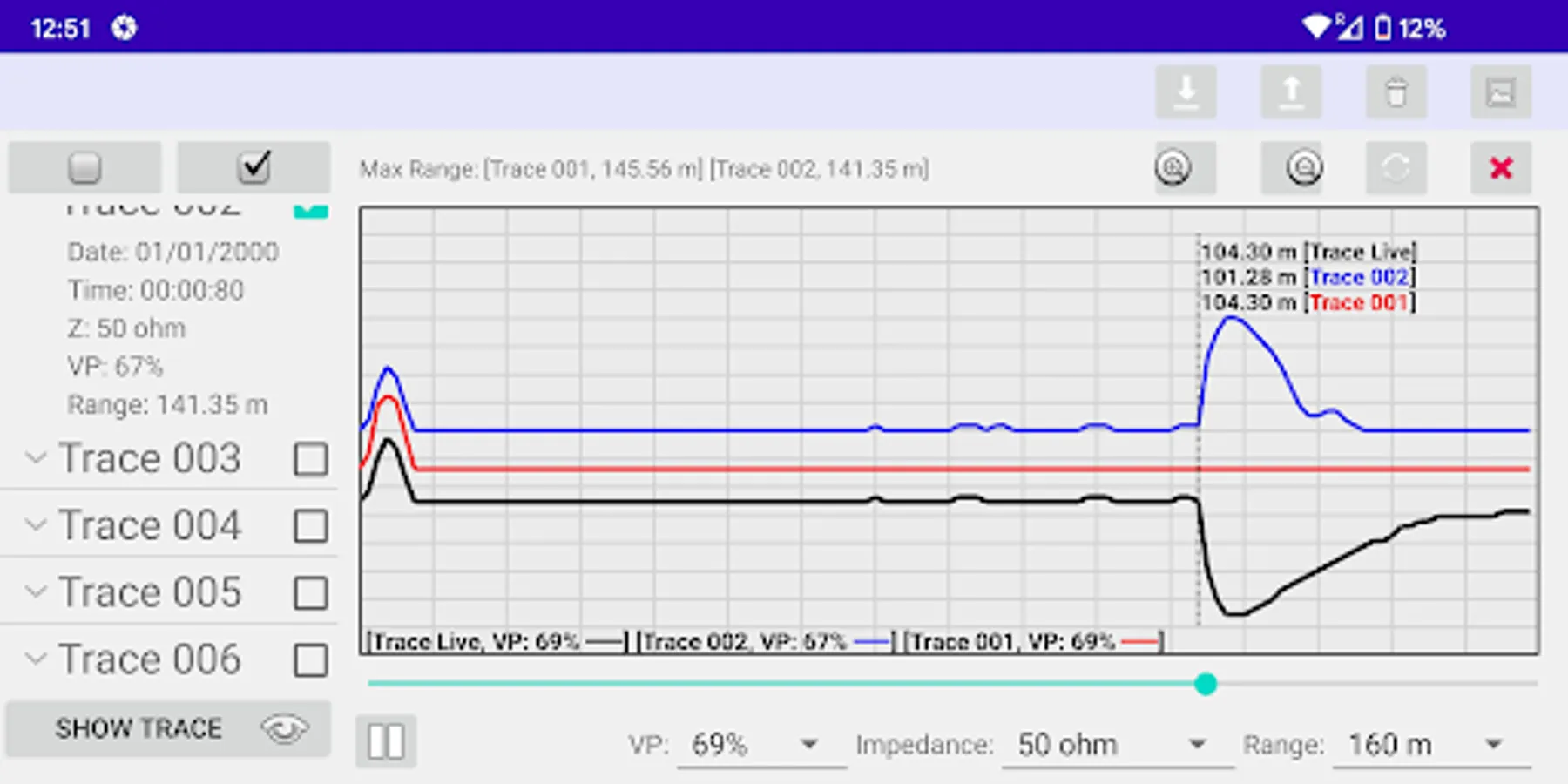 Our APP is designed for remotely controlling the Bluetooth embedded TDR devices (designed by B I Communications Ltd). You can download the trace data (saved in the TDR device) to the APP. The downloaded traces can be plotted on your mobile device. Furthermore, you can remotely control the connected TDR device to get real-time traces. You can decide to save the real-time trace data in your mobile device or upload to your TDR device. Moreover, you can export the trace figures from the APP to your gallery. Also, you can share a report (with trace figure) via email or third party social networking APP.