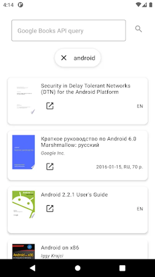 Open Google Books API is used as an test API (https://developers.google.com/books/docs/v1/using).