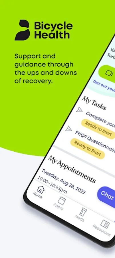 The Bicycle Health mobile application is the primary treatment portal for our patients. Our patients can use our application to conduct video visits with their provider, view and reschedule upcoming appointments, view prescriptions and request refills, access treatment documents, submit toxicology screens, modify billing preferences, and communicate with our care team via secure messaging.