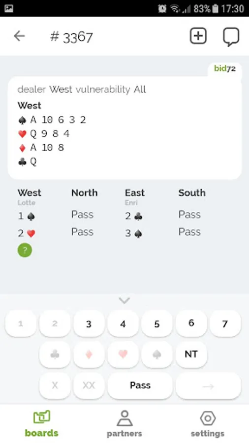 The app is ideal to practice bidding with your partner(s), teacher(s) and coach(es) on any level (beginner, club, expert) and fit for any bidding system. The app allows you to reach contracts within the blink of an eye.