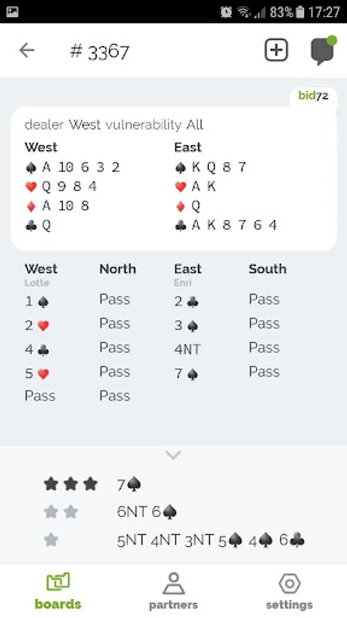 To spice up your sense of competitiveness bid72 designed Ranking the Stars. After each finished board your progress is measuered and adapted real time.