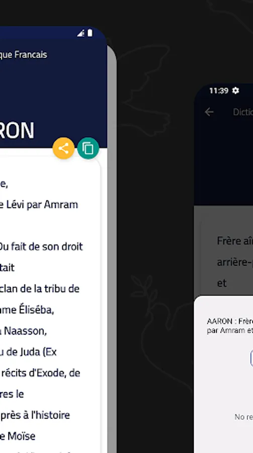 Biblical Dictionary in French and The Louis Segond Bible 1910 about 5000 words. You don't need internet connection!
