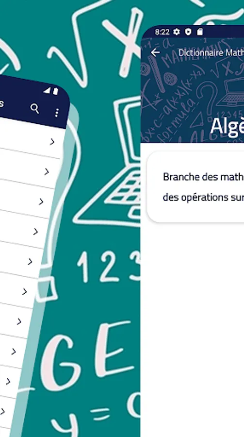 Mathematical dictionary in French offline the definitions of mathematical terms in French in a few seconds, The application of Mathematical Dictionary containing Technical words and their definition.
