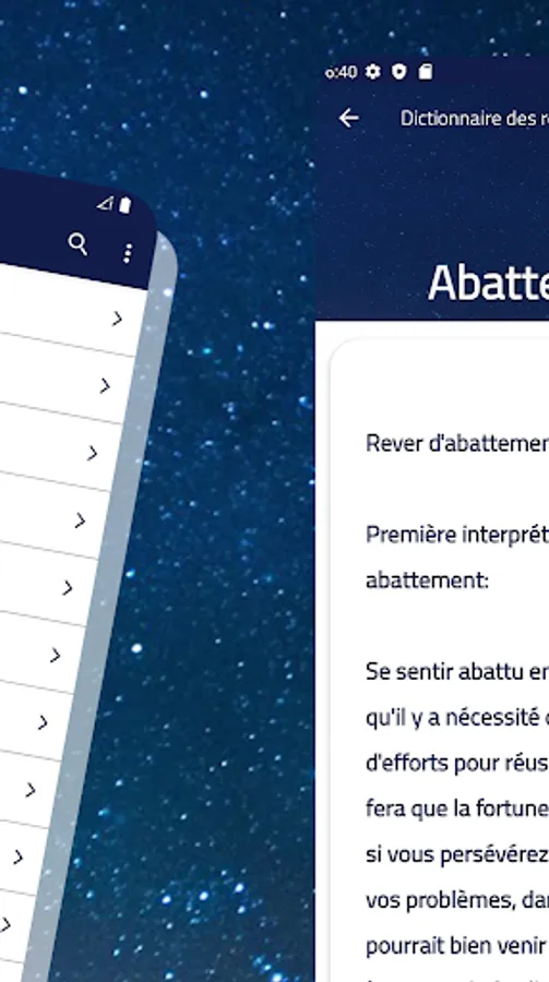 The dream dictionary aims to help you interpret the meaning of the dream symbols you encounter. Each definition is an opportunity to deepen your interpretation by combining the most common meanings with a personal approach through questions and relevant analysis tips for each symbol.