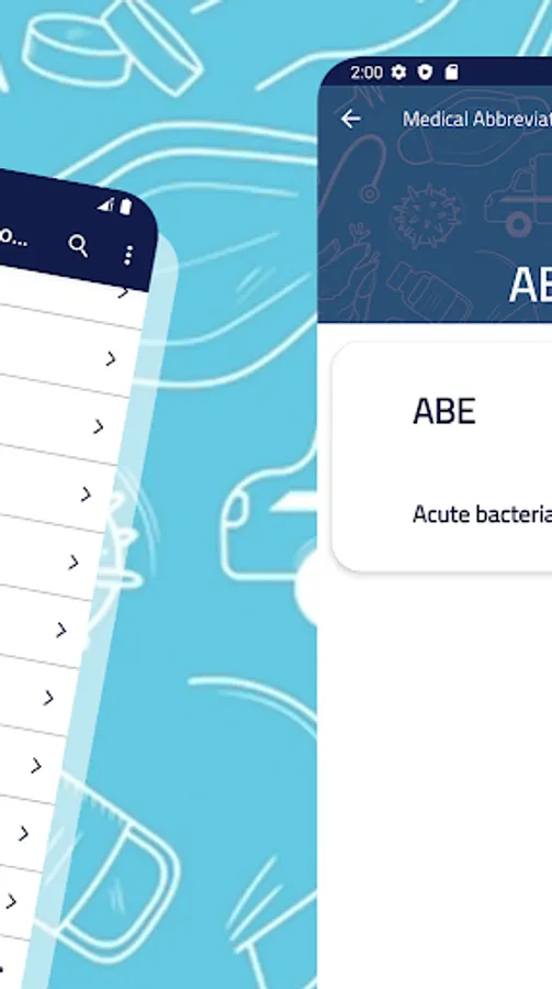 A list of thousands of medical abbreviations in a small app, you can view from a-z or use the search box for fast access to any abbreviation