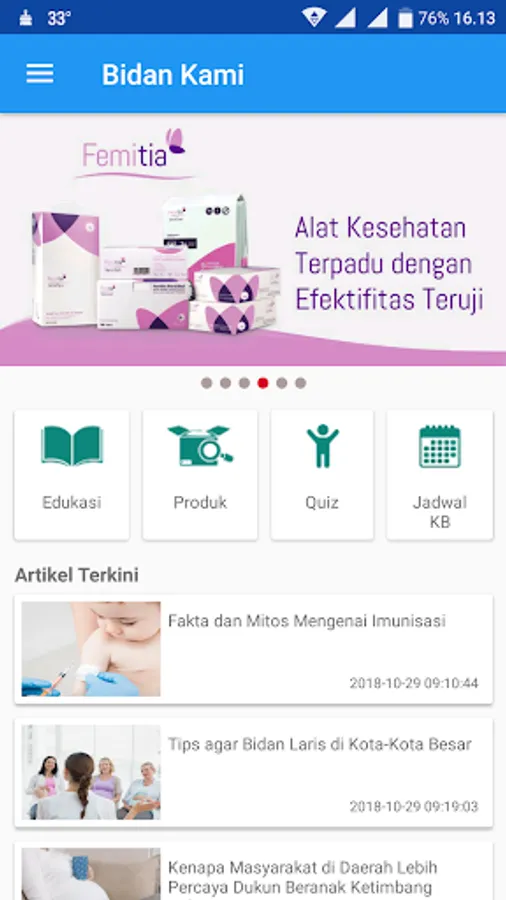 Aplikasi Bidan Kami diluncurkan oleh PT. Tunggal Idaman Abdi dalam rangka membantu bidan dalam mendapatkan Informasi-Informasi terkini seputar kebidanan dan juga Informasi tentang produk-produk terkini dari PT. Tunggal Idaman Abdi disamping juga Fitur pengingat Jadwal KB yang sudah kami rancang sedemikian rupa sehingga memudahkan bidan dalam mengingatkan para Aseptor KB agar selalu tepat waktu dalam ber-KB .