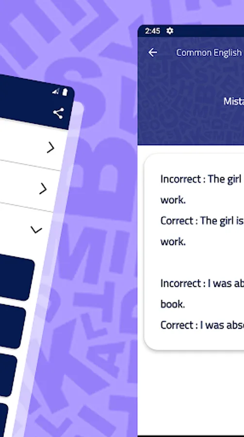 This common mistakes in English app you can use in offline and online mode so that your error in English grammar reduces consequently.