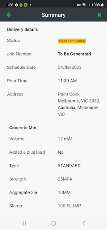 The BidCrete App is designed to improve the delivery and purchasing of concrete and steel, saving time and money whilst expanding your choice in supplier. Builders are often time-poor and call the first supplier that comes to mind to order construction materials at the last minute. Now with BidCrete you can simply go online through your mobile phone or desktop and access your favourite suppliers and orders. On your screen, you will be able to make product choices and request a quote, by price, by location and most importantly by booking time. The supplier then has the opportunity to bid for your work in the same way. Creating concrete and steel orders that suit both the builder and supplier.