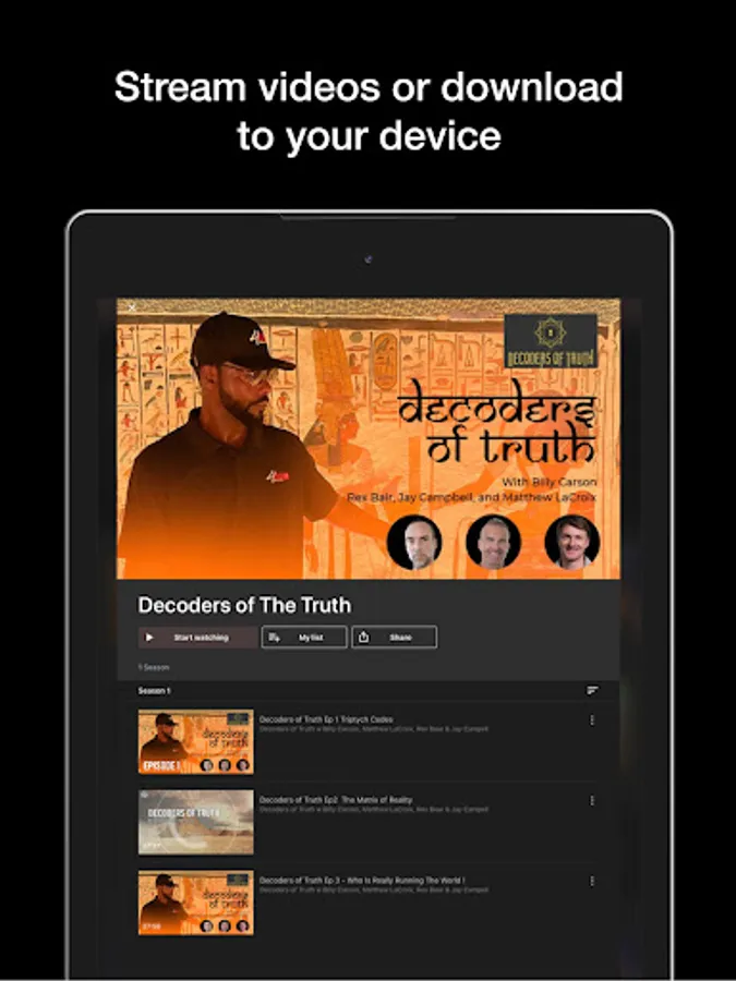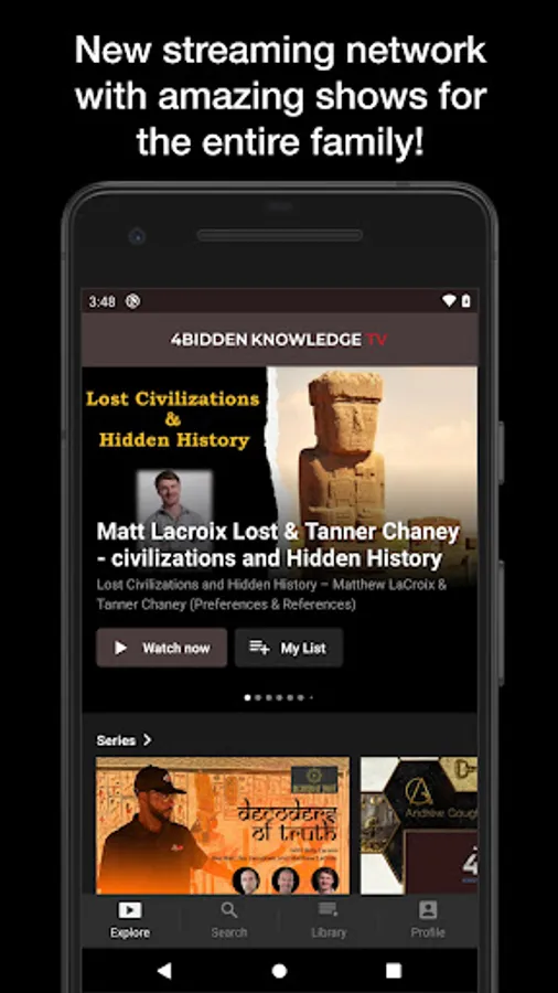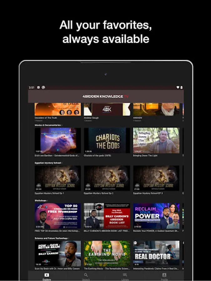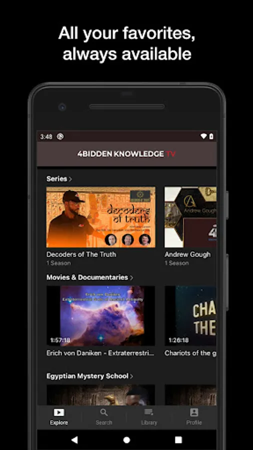 To access all features and content you can subscribe to 4biddenknowledge TV on a monthly or yearly basis with an auto-renewing subscription right inside the app.* Pricing can vary by region and will be confirmed before purchase in the app. In app subscriptions will automatically renew at the end of their cycle.