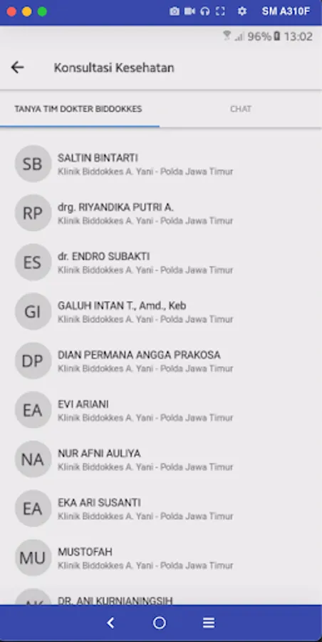 The Health Application of the East Java Regional Police Biddokkes is extraordinary