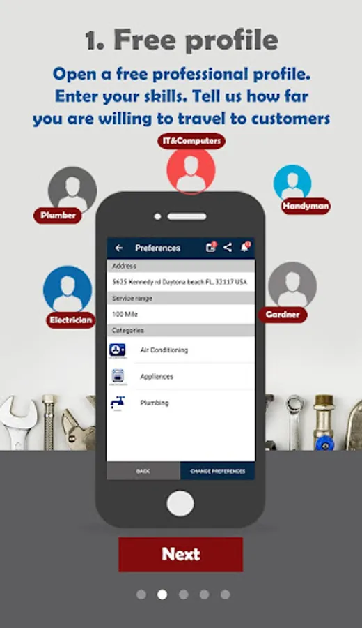 1. You set your address, type of jobs you are qualified for, and how far you want to travel to your customers.