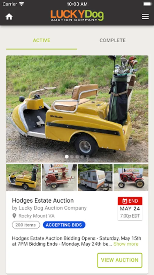 The official mobile app for Lucky Dog Auction Company. Our experienced staff helps customers sell items from their home or place of business through our organized system of checks and balances. This dynamic app allows you to (1) stay informed about our upcoming auctions; (2) watch items that interest you; (3) get notifications when you’ve been outbid; (4) bid in our auctions no matter where you have to be (or set and forget your maximum bid to let our platform automatically bid the lowest possible winning bid for you). This is the go-to-source for up-to-the-minute information on all of Lucky Dog's auctions.