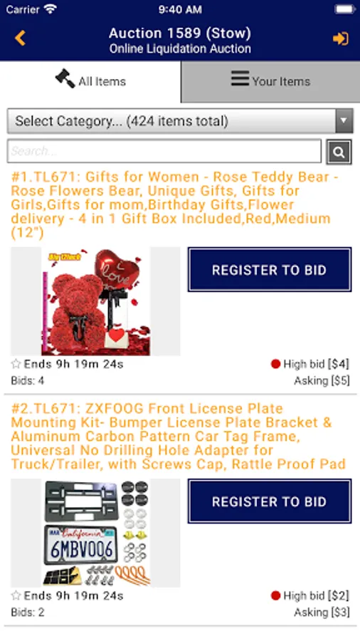 We are online liquidators of merchandise from some of the world largest, very well known retailers. We buy customer returns, overstocks by the truckload, unload, organize, inventory and set up for our customers to inspect during preview. Some of what we sell is in new, untouched condition; some may be incomplete, damaged, or have been previously used. With our mobile app you can: 1. Stay informed about our upcoming auctions. 2. Get reminders for items that you care about that are coming up for auction. 3. Get notifications when you've been outbid and never lose on an item just because you didn't know you were no longer the high bidder. 4. Bid in our auctions no matter where you have to be. Or set and forget your maximum bid and let our platform automatically bid the lowest possible winning bid for you.