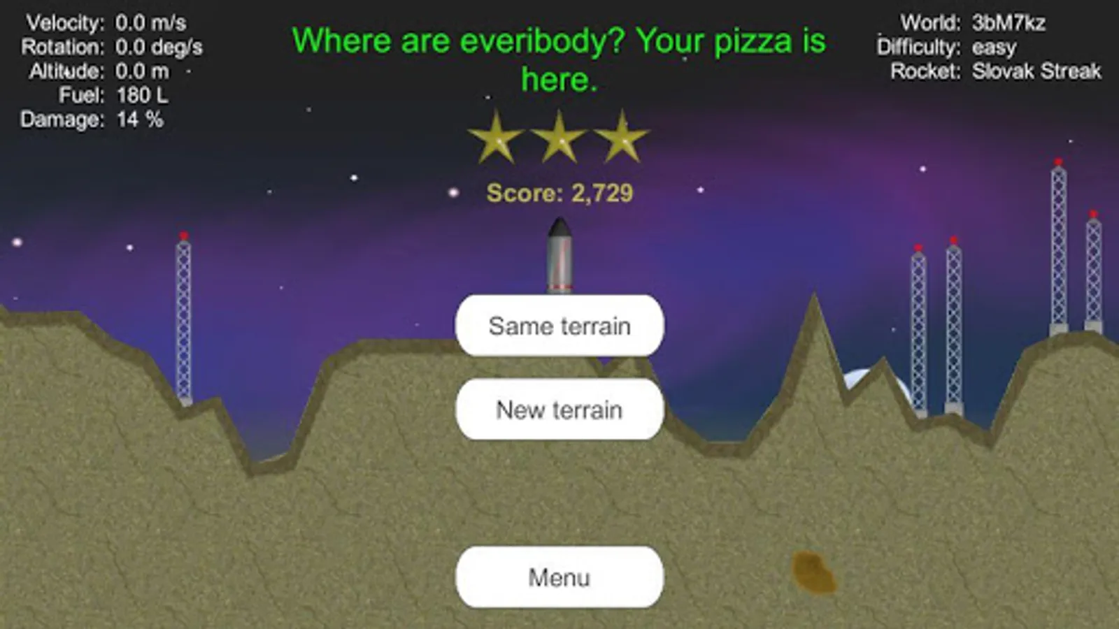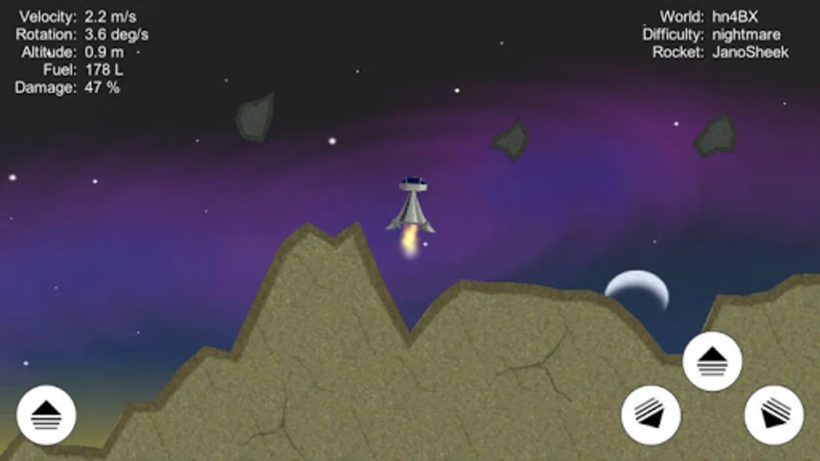 It's a fast-paced game where you land a rocket on the planet. Using nozzles, you control the fall and direction of the rocket and you try to land on the landing platform smoothly and with as little damage as possible.