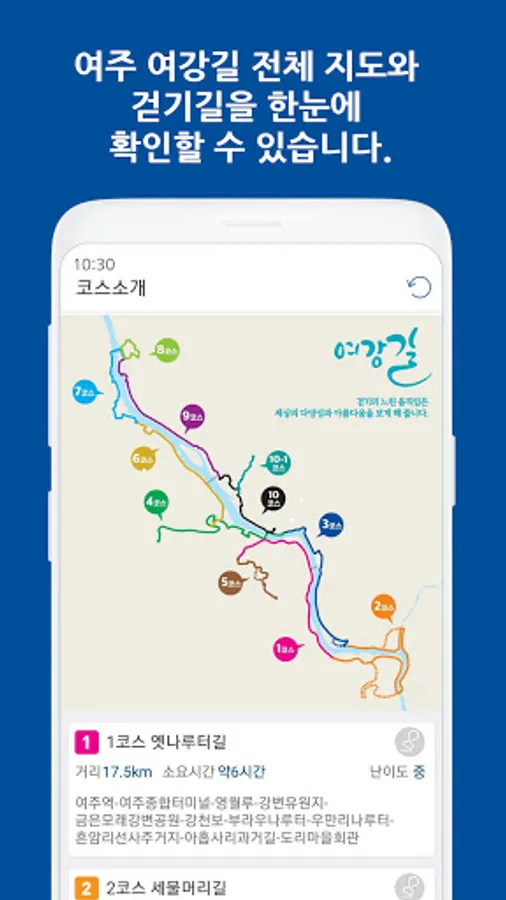 ※ We will send you a certificate and a souvenir when you complete the entire course with the'Yeoju Yeogang-gil' app.