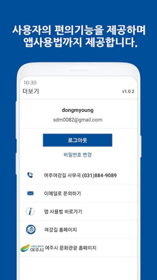 Application: Yeoju Yeogang-gil Secretariat (031)884-9089