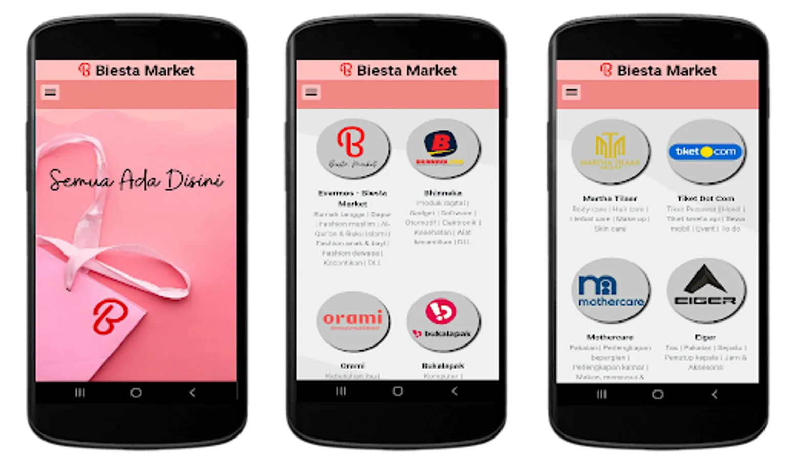 >> Biesta Market provides digital products from iStore, Indosat and Oppo.