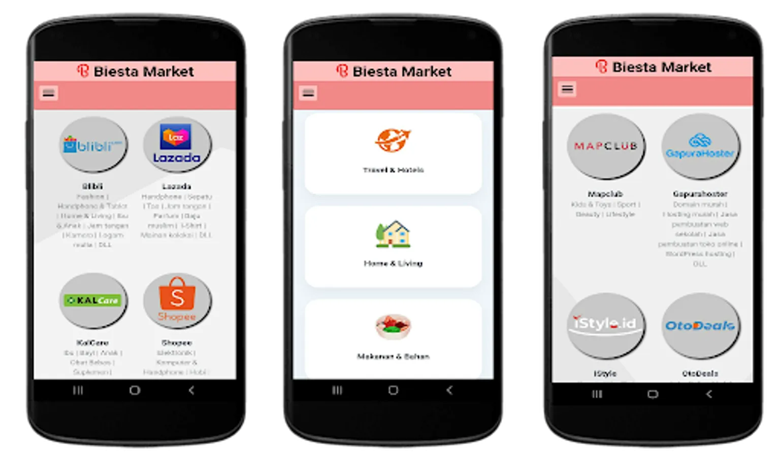 >> Biesta Market is the most complete online mall, because it contains dozens of e-commerce platforms such as shopee, lazada, Bukalapak, Blibli, Berrybenka, Hijabenka, Adidas, Ali Express, Bhinneka, Ocistok, Orami, Eiger, etc.
