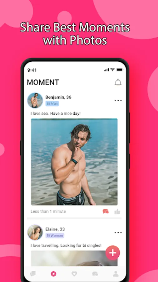 In a world where bisexual individuals form a small percentage, it can be challenging to connect in real life. That's why BiFish brings the entire spectrum of the bisexual and bi curious community together, making it easier than ever to meet like-minded people. But that's not all! Our app warmly welcomes members from all walks of the LGBTQ+ community, whether straight, gay, lesbian, transgender, or any other identity.