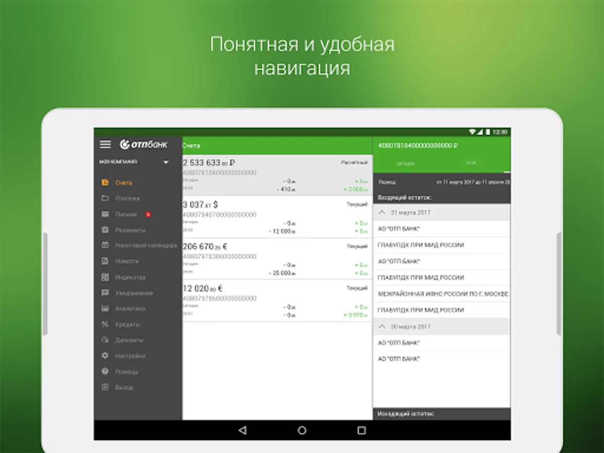 • Use Android Fingerprint - safe technology to log into the application, signing payments and letters;