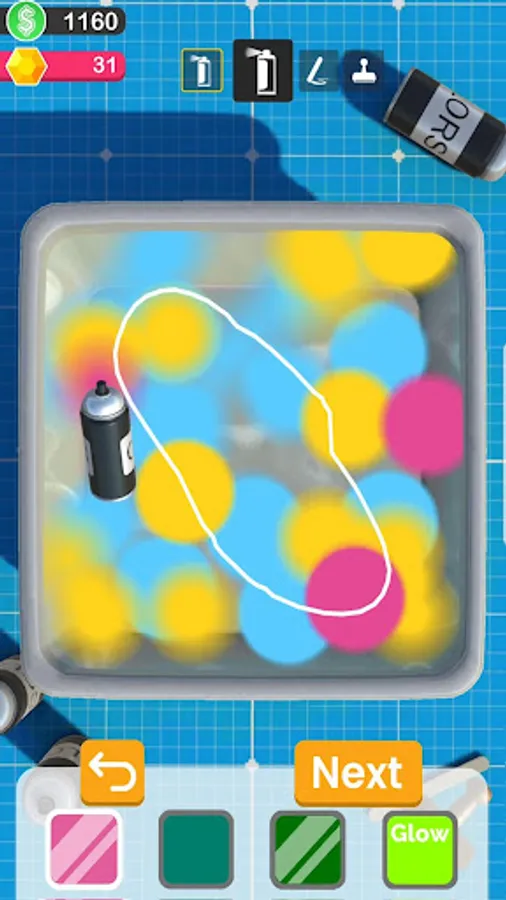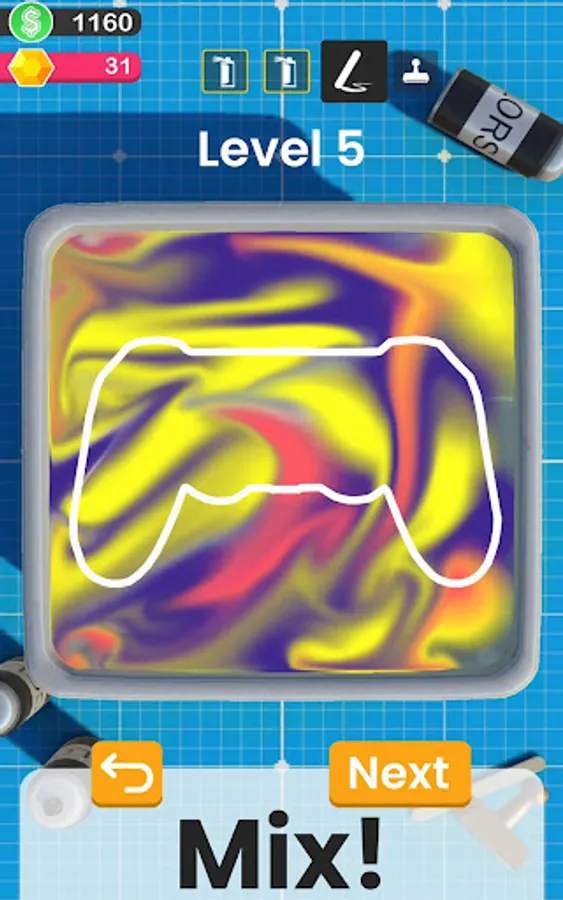 Simple controls - start by applying colors with your finger, then mix them all with a gesture and dip the object to see the magic happen.