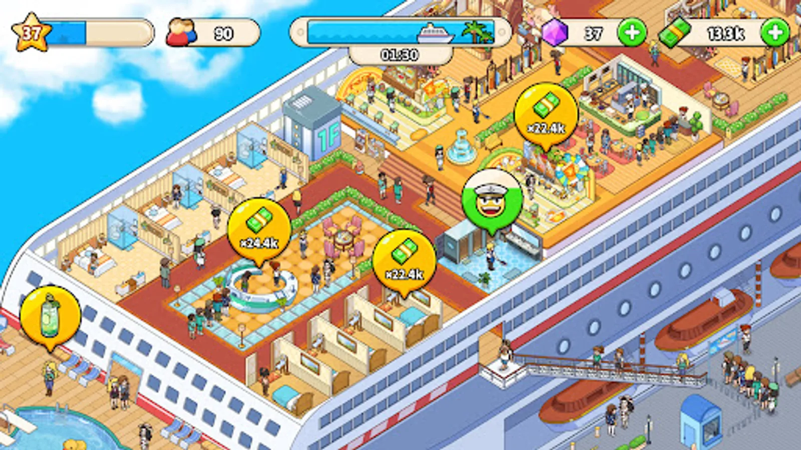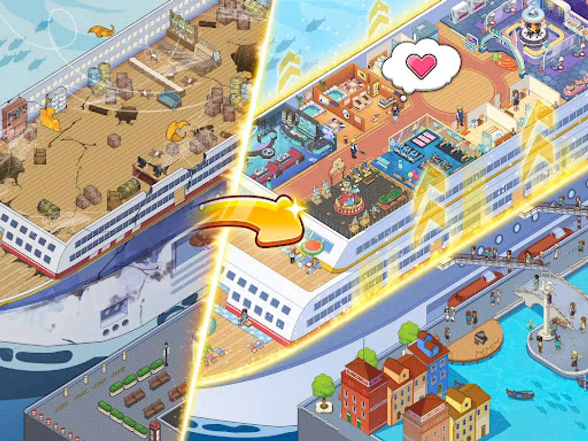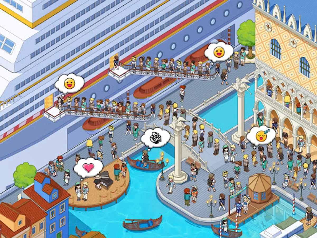 Here you will meet guests from all over the world, from different places, with different professions, different hobbies and needs. Upgrade and perfect your cruise ship, provide them with the best service, open their dream vacation and boost your reputation. This is a bustling city on the move!