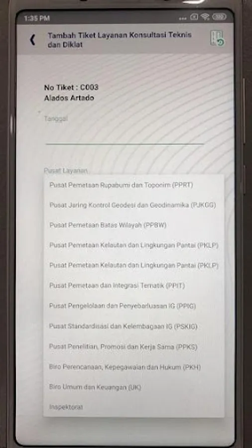 Sigesit Mobile Apps is a service ticketing application available at the Geospatial Information Agency. Through the Sigesit mibile application, users can register and ticket the services provided which consist of Services, Training Services and Technical Consultation. Users can also provide customer satisfaction surveys on the sigesit mobile application.