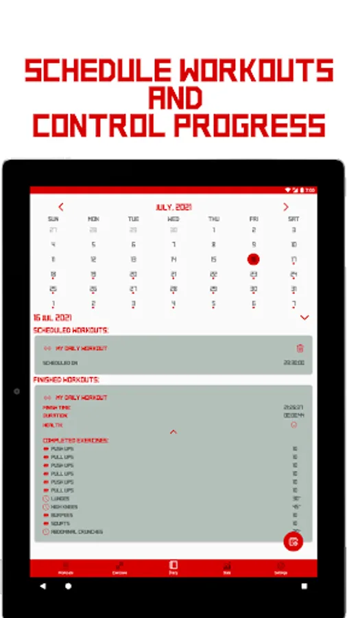 The results of completed workouts are recorded in a diary and collected in a single statistic with various graphs for easy tracking of your sports activity. Plan your workouts in a convenient calendar with reminder options.
