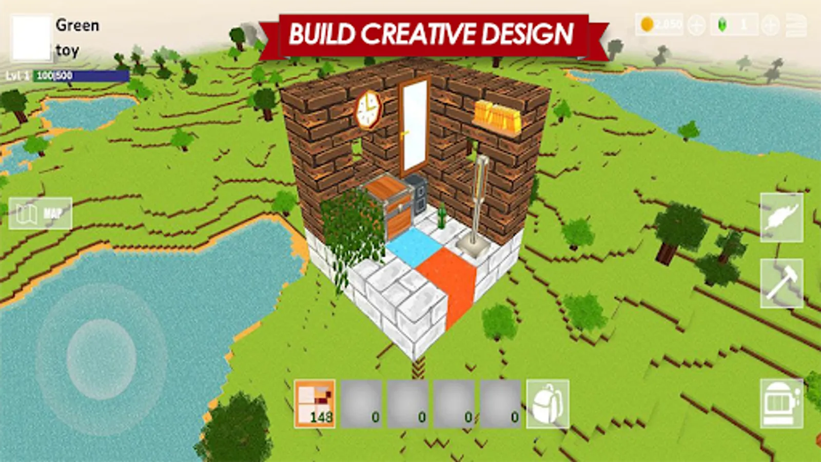 Build your world, use your own creativity to build or choose pre-designed structures with blue prints.