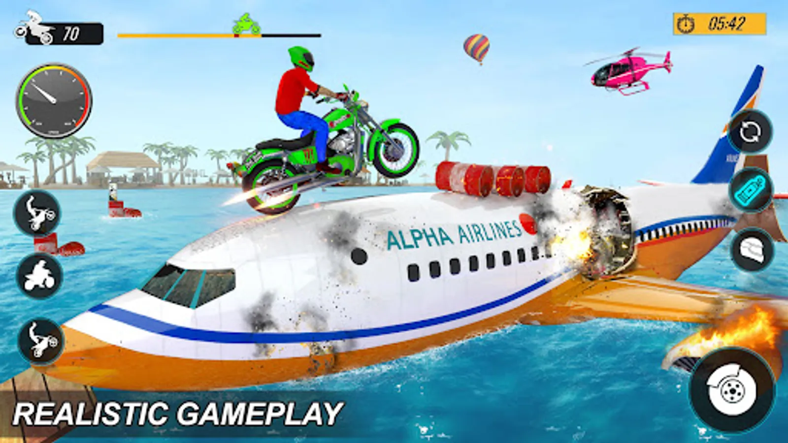 Master tricky stunts as a tricks master to prove yourself as the flying motorcycle games
